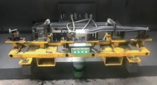 ⑴落料片的生產(chǎn)。落料片是在開卷落料線上生產(chǎn)出來特定輪廓的料片,然后將其運送至熱成形線,由機器人通過真空吸盤將落料片送至打碼機打碼之后,放至輸送線上傳送至加熱爐。