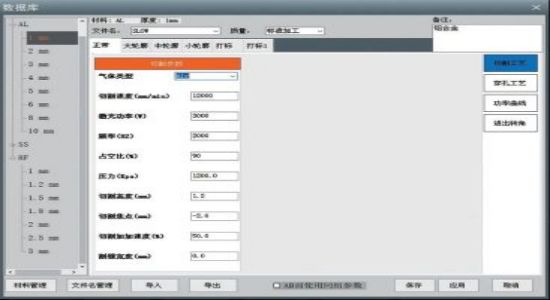切割三維工件時并不一直是直線切割,在切割過程中會有大量的拐角、凸起或變向,機床的實際運行速度是在不斷變化的。為此,我們采集了實時路徑速度、激光器功率、頻率、占空比等參數(shù)數(shù)據(jù),根據(jù)其變化匹配出的最佳切割參數(shù),找其相對應(yīng)的函數(shù)關(guān)系,實現(xiàn)輸出變量將時刻變化的參數(shù)揉到機床的運動中,實現(xiàn)效率不減,切割質(zhì)量上升,或者效率略降,切割質(zhì)量提升。將該公式寫入系統(tǒng)程序中,通過人機交互界面直接激活功能即可使用。