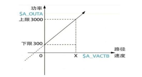 激光功率和進給路徑速度組成一個函數(shù):使用FCTDEF可以定義三階多項式,形式為y=f(x)=a0+a1x+a2x2+a3x3;直線段多項式舉例:上限為1000、下限為-1000、縱坐標線段為a0=$AA_IM[x]且斜率為1的多項式定義:FCTDEF(1,-1000,1000,$AA_IM[x],1)。