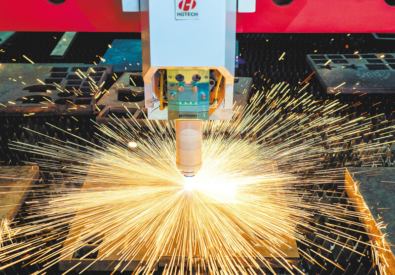 華工激光葛店基地,智能激光切割機正在切割鋼板。(湖北日報全媒記者 魏錸 通訊員 俞智君 攝)