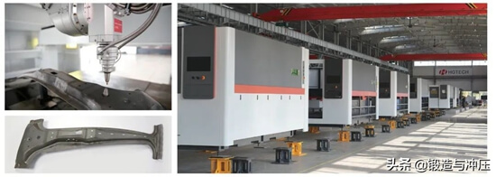 主要應(yīng)用于汽車熱成形領(lǐng)域,解決了高強鋼難沖壓的問題,替代了大量的沖孔模和修邊模,可以說是削鐵如泥,適用于批量連續(xù)作業(yè),可大幅降低產(chǎn)品開發(fā)周期及模具成本。和傳統(tǒng)機器人三維切割相比,切割精度高、速度快,斷面更平滑。