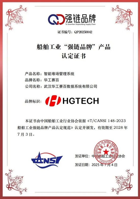 近日,中國(guó)船舶工業(yè)行業(yè)協(xié)會(huì)開(kāi)展2025年度船舶工業(yè)“強(qiáng)鏈品牌”產(chǎn)品申報(bào)和認(rèn)定工作。華工賽百申報(bào)的智能堆場(chǎng)管理系統(tǒng)通過(guò)專家團(tuán)隊(duì)審查,被認(rèn)定并列入船舶工業(yè)“強(qiáng)鏈品牌”產(chǎn)品目錄。該系統(tǒng)具備高度集成性、全流程數(shù)字化,并配備多重安全防護(hù)措施。