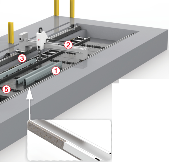 ⑤ 清洗作業(yè)完成后,U肋原路返回上料區(qū)域,由移載機構(gòu) 進行卸料。U肋進入存放架,至此一個作業(yè)循環(huán)完成。